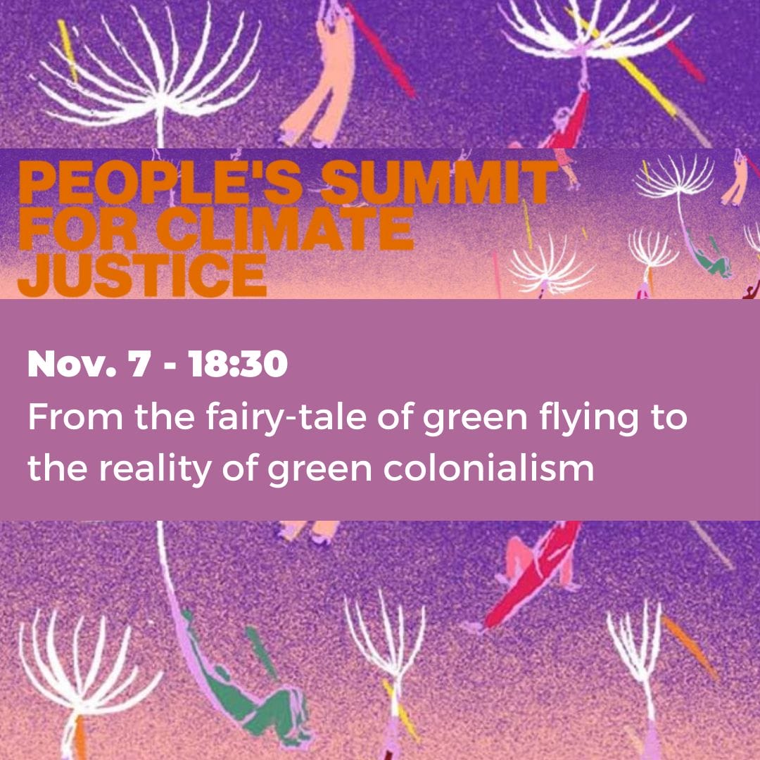 TO REGISTER: https://cop26coalition.org/peoples-summit/from-the-fairy-tale-of-green-flying-to-the-reality-of-green-colonialism-4/