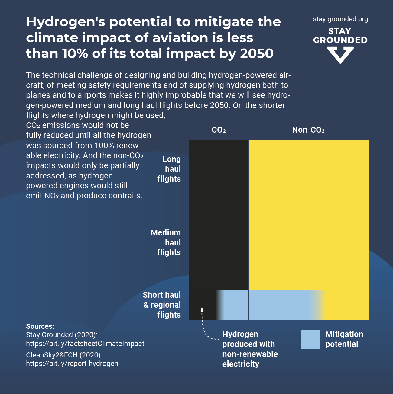 However there is rampant mislabeling of these feedstocks, including, for example, virgin palm oil labeled as used cooking oil. So-called “advanced biofuels” from lignocellulosic biomass (wood, straw…) have never been and are unlikely to ever be technically proven at scale. Hydrogen, although rarely mentioned, is required in all certified aviation biofuel production processes, but is today mostly produced from fossil fuels (see Fact Sheet #3 Hydrogen flight).