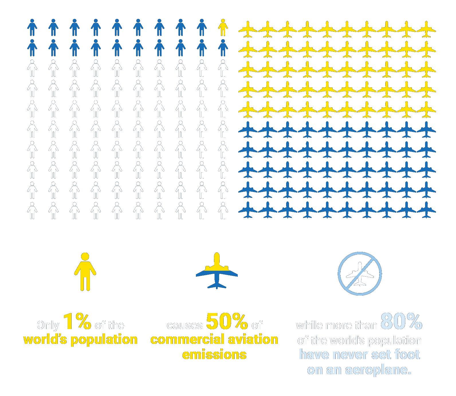 While to many Western Europeans, it might seem normal to fly, this has only been the case for the past few decades and is still not the norm globally. Only a small minority of the world’s population flies: 2-4% of the world’s population flew internationally in 2018 and 80% have never flown at all. This means that 1% of the world’s population is responsible for 50% of all aviation emissions. 90% of aviation emissions were generated in high-income or upper-middle-income countries.