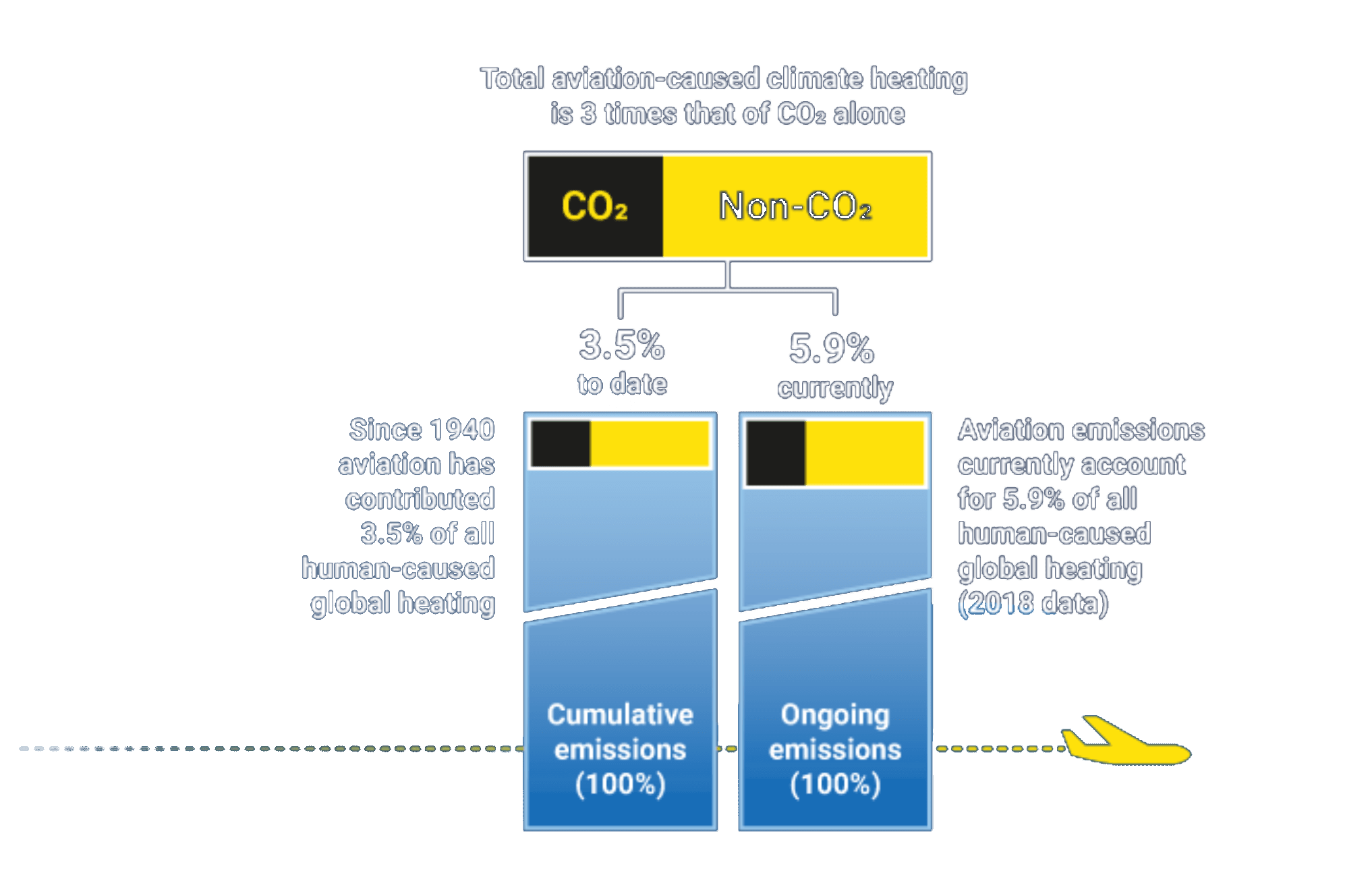 - Third, the non-CO2 effects of aviation are not accounted for, meaning that at least two thirds of the climate impact are ignored.