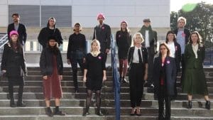 The Stansted 15 at the trial start in October 2018 (photo: Rising Tide Bristol)