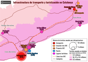 The Stay Grounded network, together with civil society organisations and the Institute for Ecological Sciences and Technology ICTA in Barcelona, organized the conference “Degrowth of Aviation”. The conference brought together 200 people from social movements, NGOs and academia in order to discuss concrete measures and strategies to reduce air traffic. As Barcelona is one of the cities getting overcrowded by tourism, involving serious environmental, health, housing and other social problems, special links were made to movements for a just and environmentally sound tourism.
