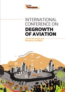 The Stay Grounded network, together with civil society organisations and the Institute for Ecological Sciences and Technology ICTA in Barcelona, organized the conference “Degrowth of Aviation”. The conference brought together 200 people from social movements, NGOs and academia in order to discuss concrete measures and strategies to reduce air traffic. As Barcelona is one of the cities getting overcrowded by tourism, involving serious environmental, health, housing and other social problems, special links were made to movements for a just and environmentally sound tourism.